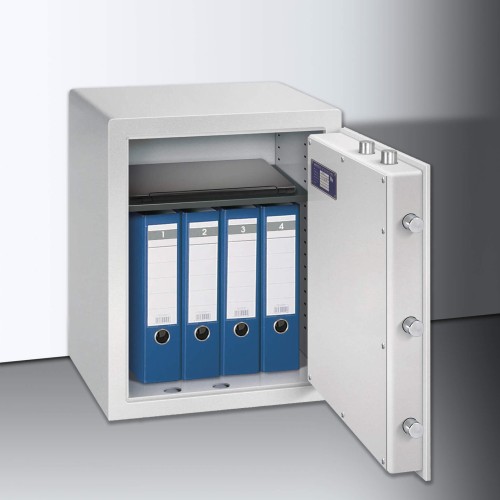 Der dreiwandige Aufbau von Korpus und Tür, die Spezialfüllung aus Beton in den Zwischenräumen sowie eine Manganpanzerung im Verschlussbereich kennzeichnen diese Serie. Sieben massive Riegelbolzen (auch bei den kleinen Modellen) sowie die Vorbereitung zur Verankerung an Boden und Wand an jeweils zwei Stellen sichern den Inhalt vor Einbruch und Diebstahl des Safes. Von der VdS Schadenverhütung wurden sie mit dem Widerstandgrad I zertifiziert haben Sie einen Tresor, auf den Sie sich verlassen können.